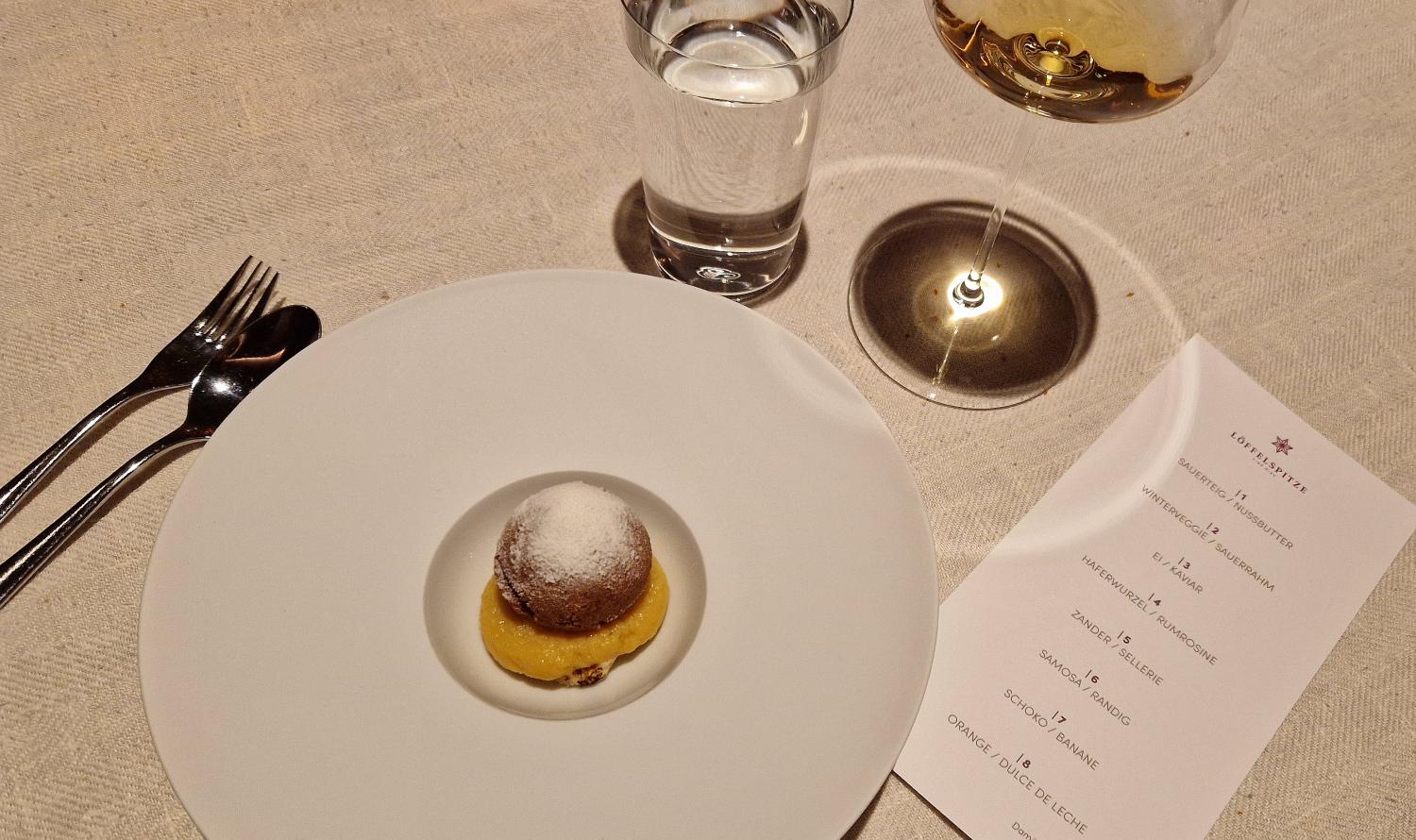 Wir gönnen uns als Abschluss unserer kulinarischen Wanderung an diesem Abend das Gourmet-Menü mit acht Gängen in der „Löffelspitze“. Dazu haben wir die Wahl zwischen einer von Sommelier Maximilian Steinfeld ausgewählten Weinbegleitung oder frisch gemixten Cocktails von Bartender Oliver Polster, die auch mal in Form von Zuckerwatte daher kommen. Und während wir noch den letzten Gruß aus der Küche genießen, bereitet Peter Bischof in der Küche schon wieder den Grießbrei für den Riebel am nächsten Morgen vor.